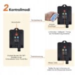 - Tryby świetlne: kombinacja, migające świetliki, fale, zanikanie, powolne pogoń/miganie, powolne zanikanie, iskierka/miganie, ciągłe światło