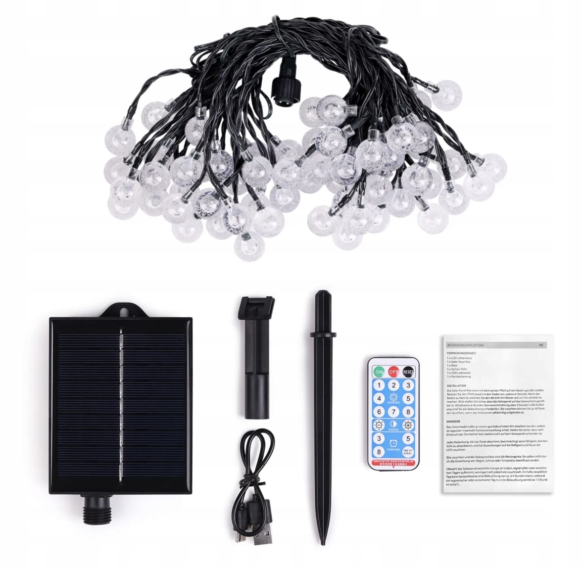 Salcar Łańcuch świetlny solarny/USB LED kulki 15 m