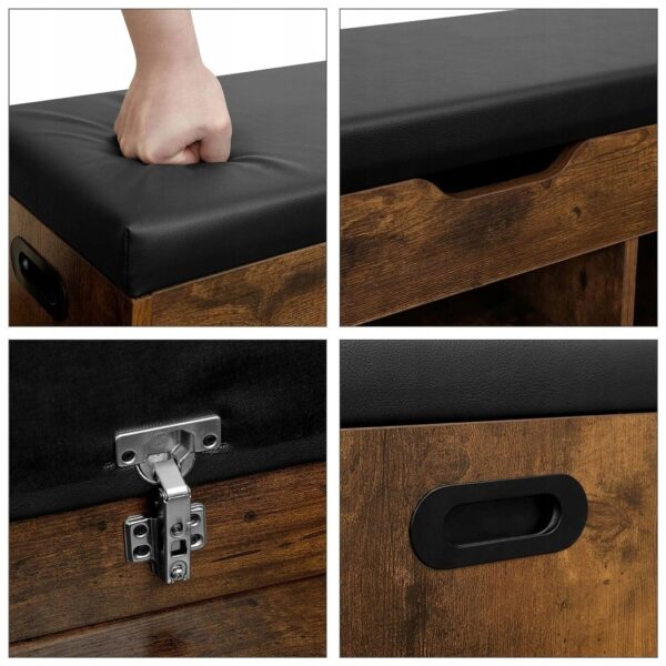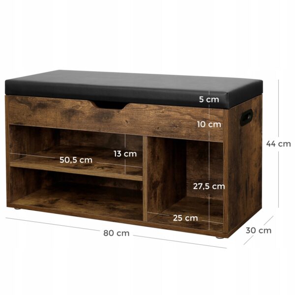 Ławka na buty z siedziskiem i schowkiem 80 cm VASAGLE rustykalna