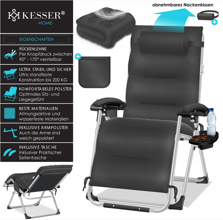Napisz pierwszą opinię o „Leżak ogrodowy Składany 200 kg regulowany Antracyt Kesser”