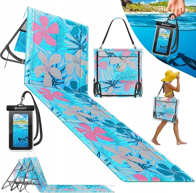 KESSER® Składany leżak plażowy z regulowanym oparciem | 130 kg | Lekki i kompaktowy | Wodoodporna torba | Niebieski