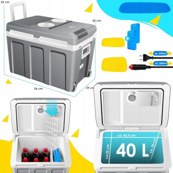 Lodówka turystyczna 40l z kółkami 12 i 230 V do samochodu, na kemping