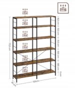 Solidny regał 6-poziomowy w stylu loftowym to połączenie funkcjonalności i industrialnego charakteru. Zestawienie brązowej płyty MDF z czarną stalową konstrukcją nadaje wnętrzu wyrazisty, nowoczesny wygląd w klimacie vintage.