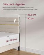 ✅ Regulowany zagłówek (110 / 116,5 cm) – dopasowany do materacy o grubości 25–31,5 cm