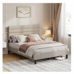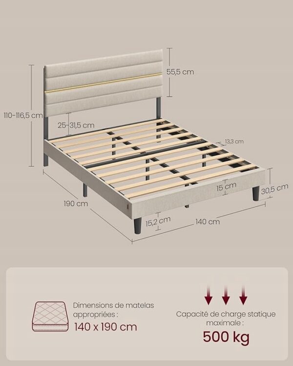 Łóżko 140×190 tapicerowane regulowany zagłówek metal VASAGLE