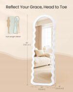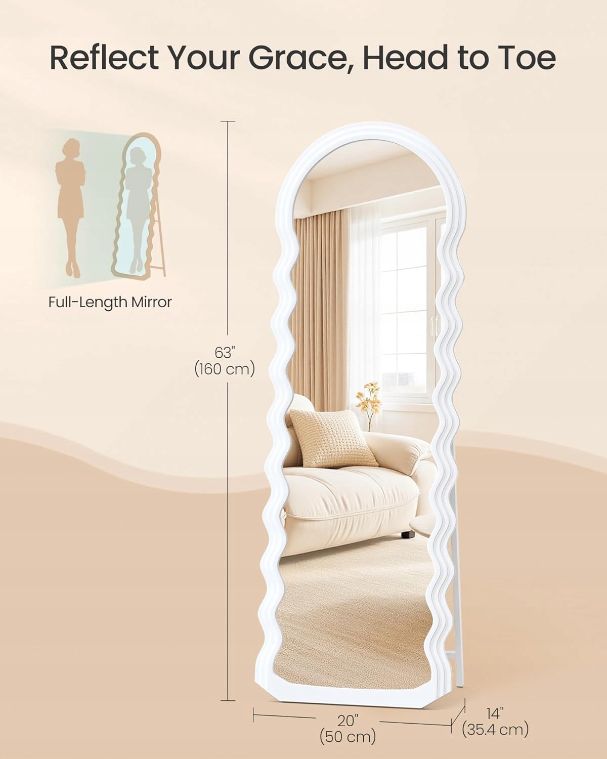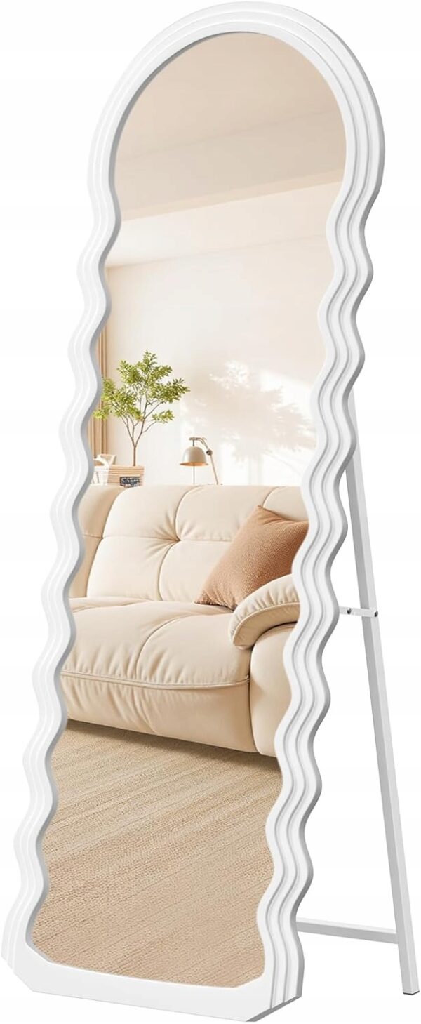 Lustro stojące 160×50 falowane białe z podstawką SONGMICS