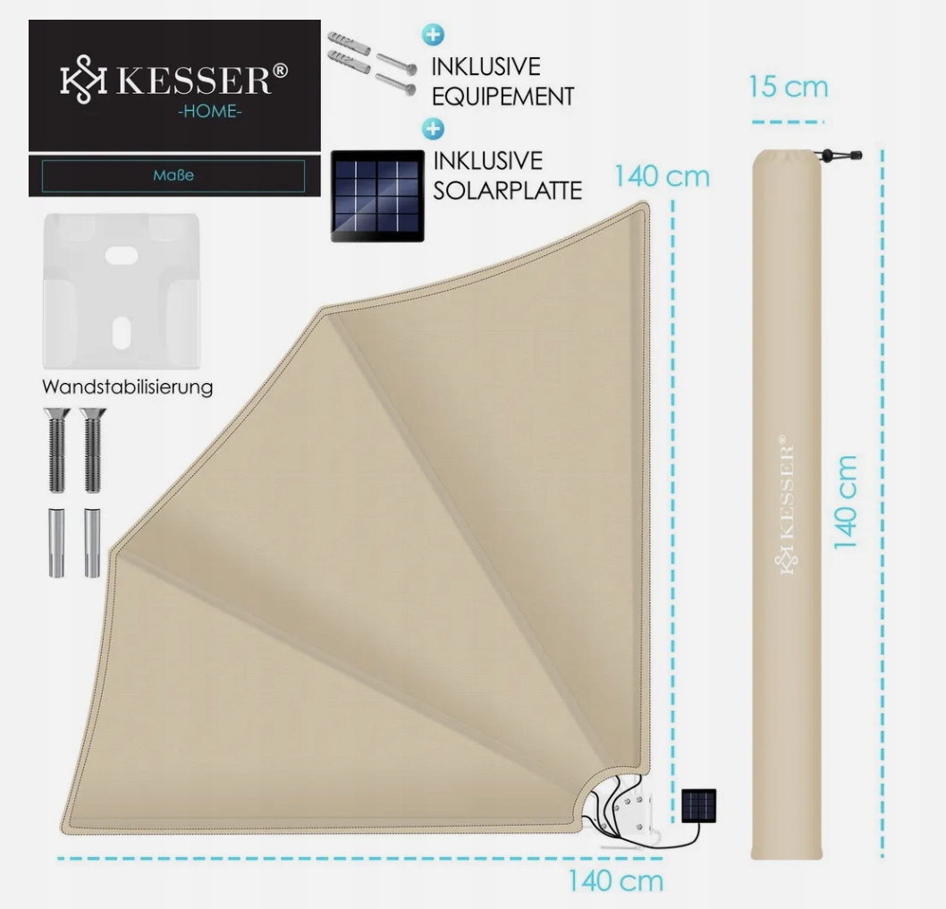 Napisz pierwszą opinię o „Markiza boczna wachlarzowa balkonowa parawan narożny 140×140 cm KESSER LED”