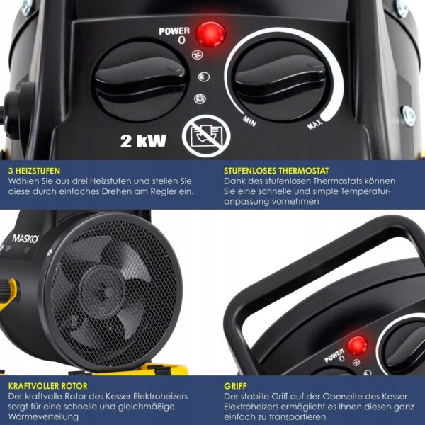 MASKO Ceramiczny Nagrzewacz Elektryczny 2kW PTC Grzejnik Przenośny