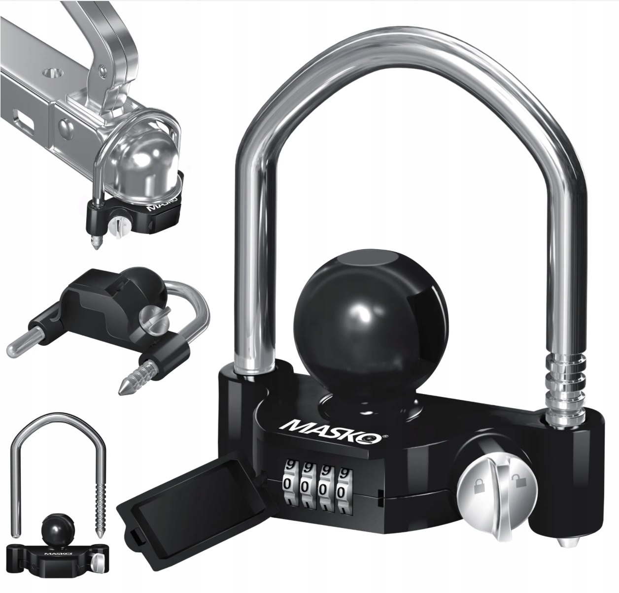 MASKO Kłódka do przyczepy, zamek szyfrowy z kodem, blokada holowania