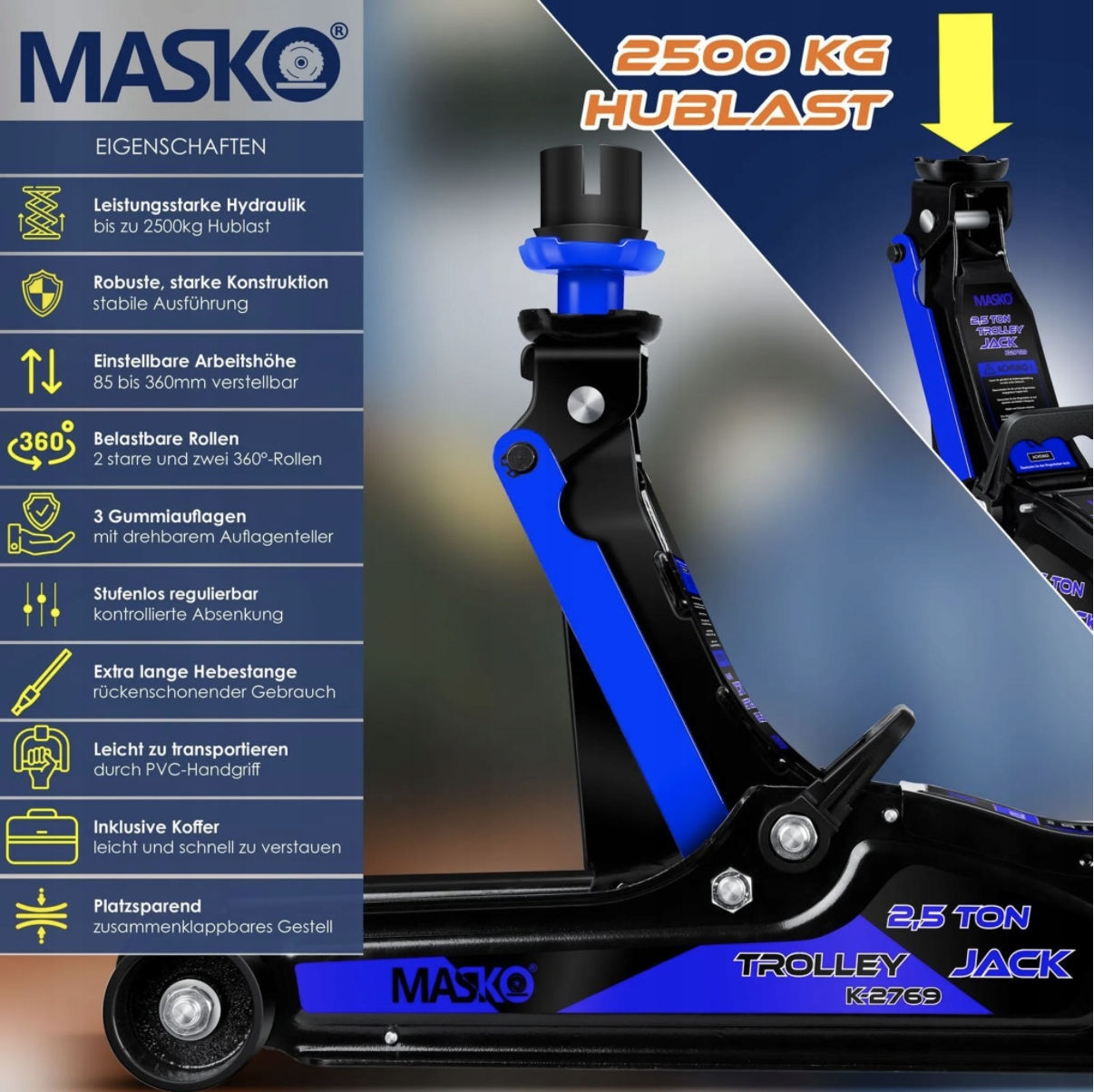 MASKO Podnośnik hydrauliczny 2,5T z walizką i rękawicami