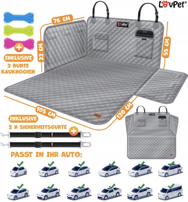 Napisz pierwszą opinię o „Mata do samochodu tkanina LOVPET szary 130 cm x 55 cm x 105 cm”