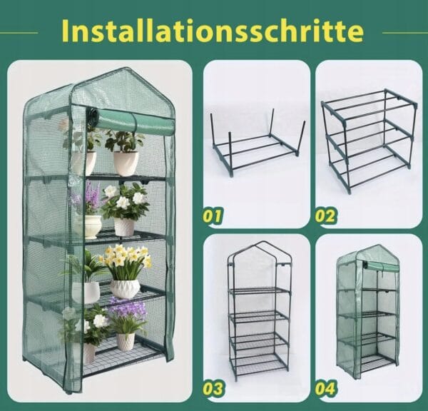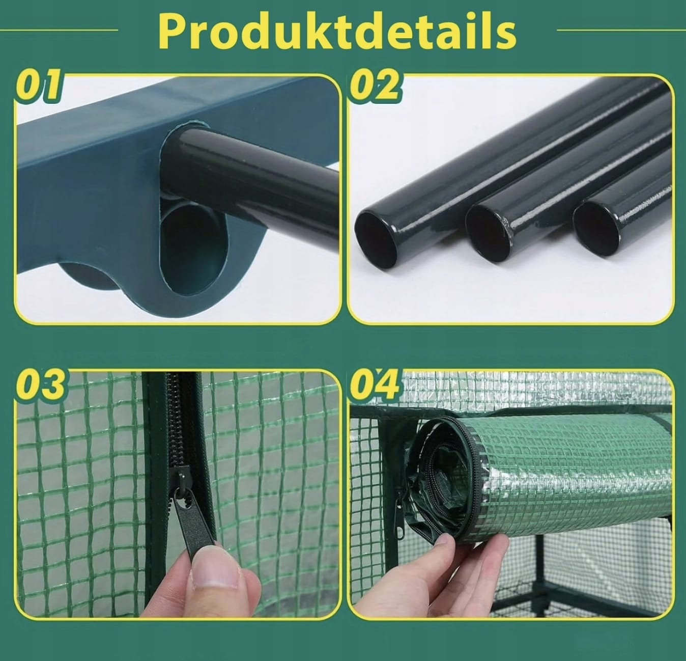 - 4 stabilne metalowe półki – wygodna uprawa ziół warzyw kwiatów oraz sadzonek na kilku poziomach