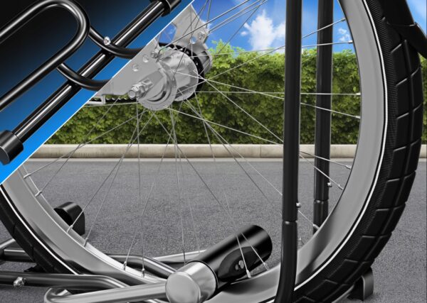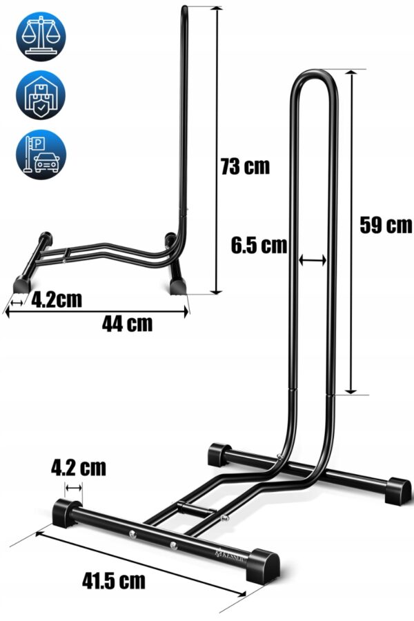 - Stabilna konstrukcja pozwala bezpiecznie zaparkować rower gdziekolwiek