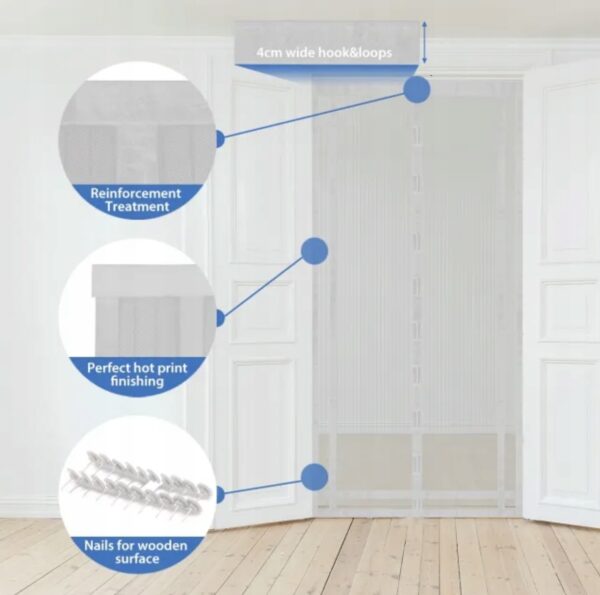 ✅ 100% poliester, materiał na drzwi z rozszerzonymi paskami magnetycznymi i przeciwwagą, redukuje hałas i sprawia, że zasłona zamyka się szybciej i łatwiej.