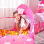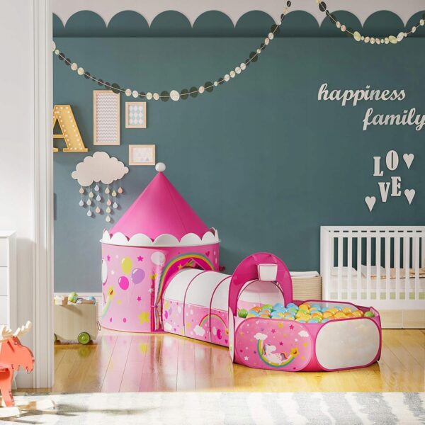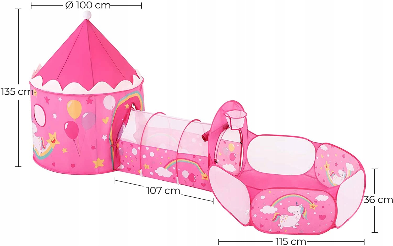 Namiot dziecięcy 3w1 tunel basen kosz różowy jednorożec SONGMICS