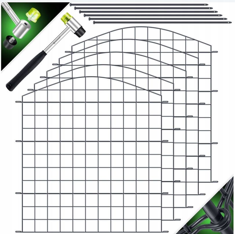 ✅ Ten zestaw ogrodzeń wykonany jest z wysokiej jakości metalu, który jest odporny na rdzę, warunki atmosferyczne i trwały. Składa się z paneli ogrodzeniowych, słupków montażowych oraz młotka, co czyni go kompleksowym zestawem, który nie wymaga żadnych dodatkowych narzędzi.