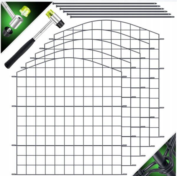 - • Wysokiej jakości zestaw składający się z elementów ogrodzenia, prętów mocujących i młotka