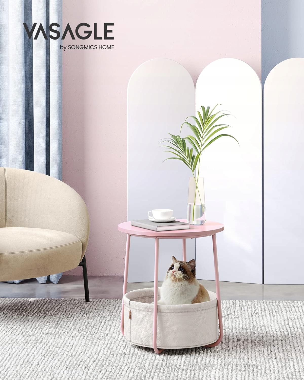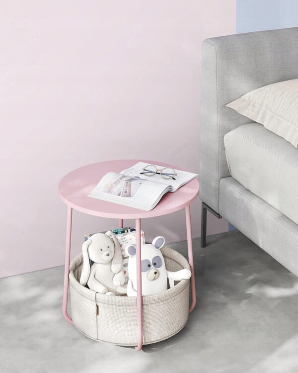 Okrągły stolik kawowy z koszem stolik pomocniczy różowy nowoczesny Vasagle