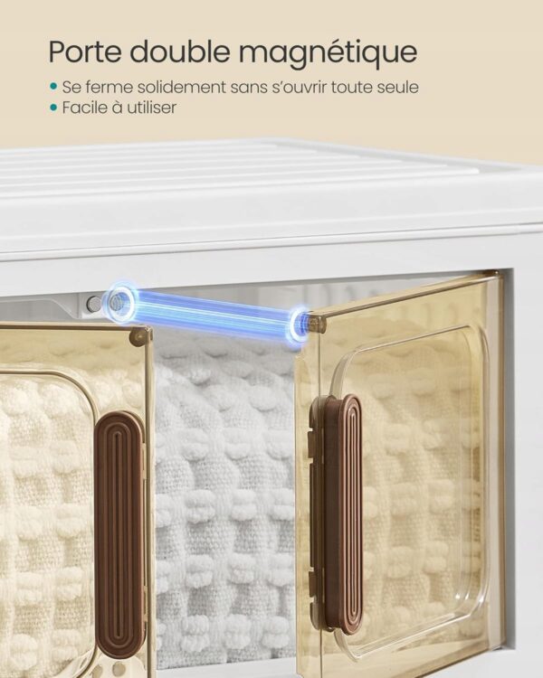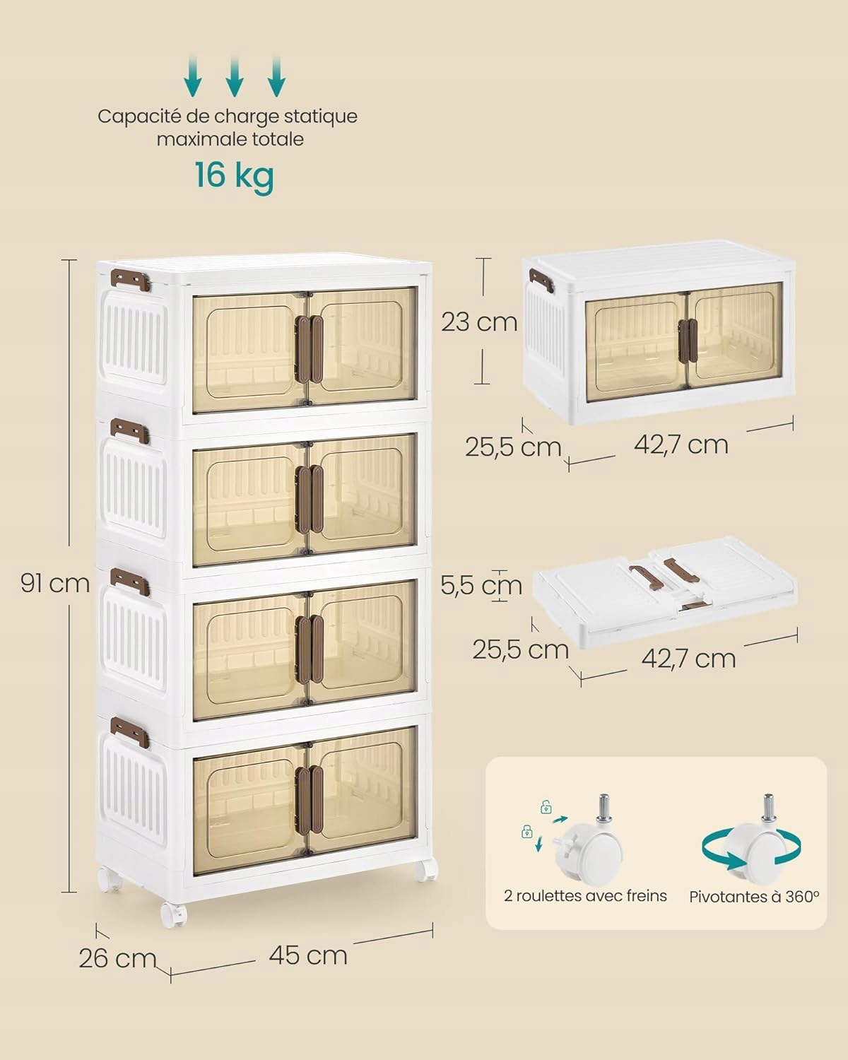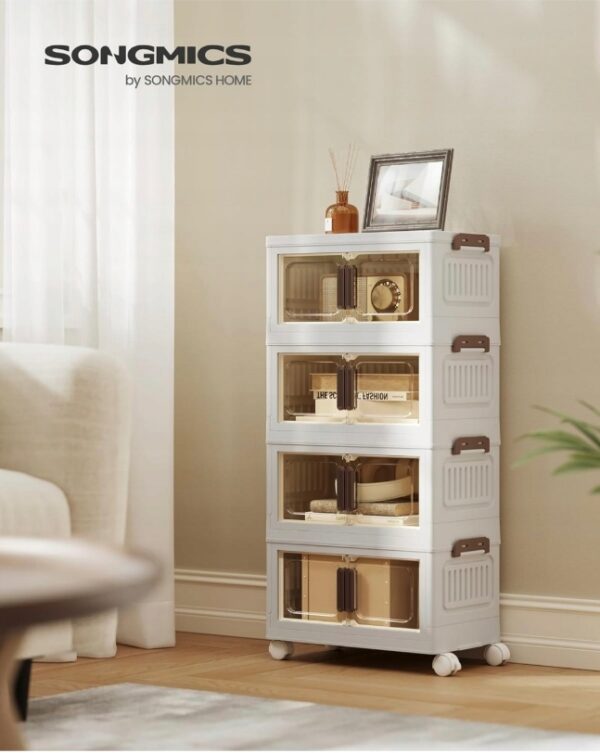 Praktyczny organizer SONGMICS o pojemności 100 L pomoże uporządkować ubrania, buty, akcesoria lub artykuły łazienkowe. Modułowa konstrukcja, podwójne drzwi magnetyczne i kółka zapewniają wygodę użytkowania w każdym pomieszczeniu.