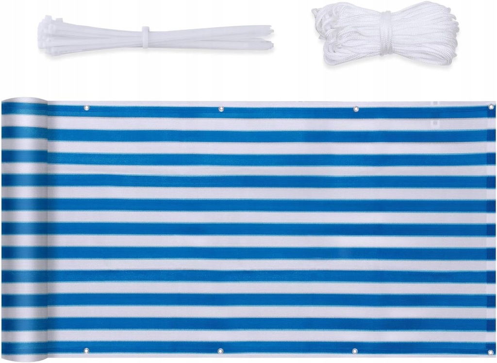 Osłona balkonowa na balkon 75 x 300 cm niebieska w paski HDPE