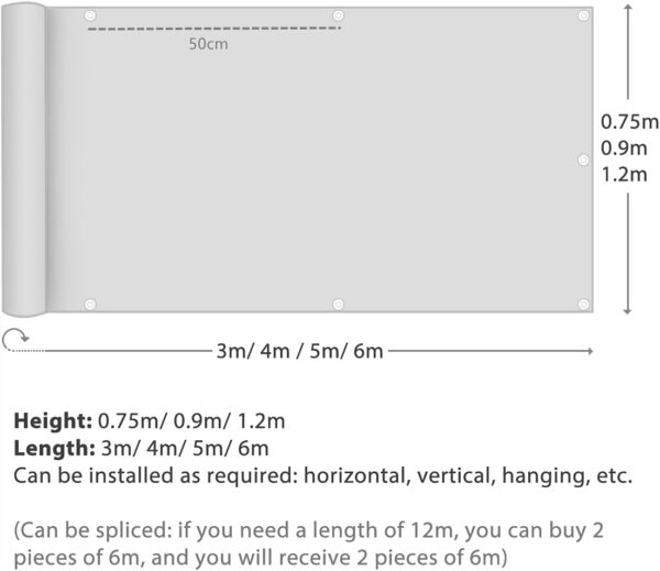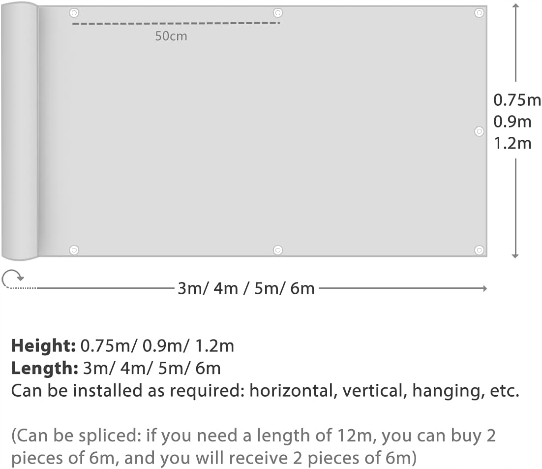 ✅ Łatwa i szybka instalacja: Ekran wiatru i prywatności można łatwo przymocować do dowolnej poręczy za pomocą dołączonego przewodu odpornego na rozdarcie, nylonowych opasek kablowych i metalowych oczek na górze i na dole. Można przyciąć do pożądanego rozmiaru.