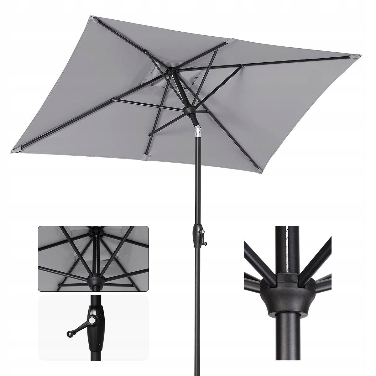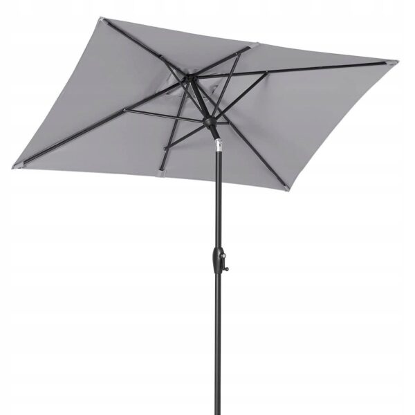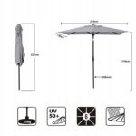 Dzięki wygodnej korbce parasol można łatwo rozkładać i składać, a regulacja kąta nachylenia pozwala dopasować ustawienie do położenia słońca przez cały dzień.
