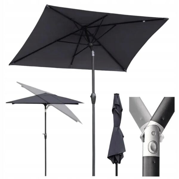 Dzięki wygodnej korbce parasol można łatwo rozkładać i składać, a regulacja kąta nachylenia pozwala dopasować ustawienie do położenia słońca przez cały dzień.