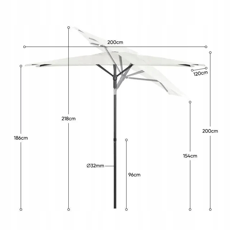Wysokiej jakości materiał z filtrem UV50+ chroni przed promieniowaniem i blaknięciem, zachowując estetyczny wygląd przez długi czas. Wzmocniona konstrukcja z 6 grubszymi ramionami zwiększa odporność na wiatr, a otwór wentylacyjny dodatkowo poprawia stabilność.