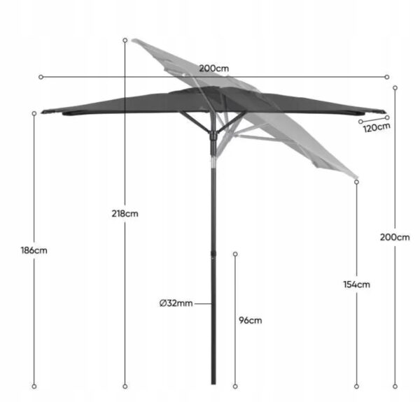 Funkcjonalny parasol balkonowy o prostokątnym kształcie to idealne rozwiązanie do mniejszych przestrzeni, takich jak balkon, taras czy ogród. Duża powierzchnia 200 x 125 cm zapewnia skuteczny cień i komfort wypoczynku nawet w słoneczne dni.