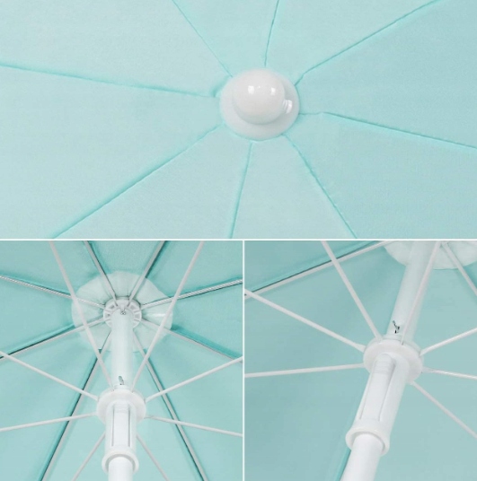 Regulowany drążek umożliwia dopasowanie wysokości parasola do aktualnych potrzeb, a funkcja nachylenia pozwala skutecznie chronić się także przed nisko ustawionym słońcem. Solidna konstrukcja z metalowym masztem i wzmocnieniami ze stali nierdzewnej gwarantuje trwałość i stabilność użytkowania.