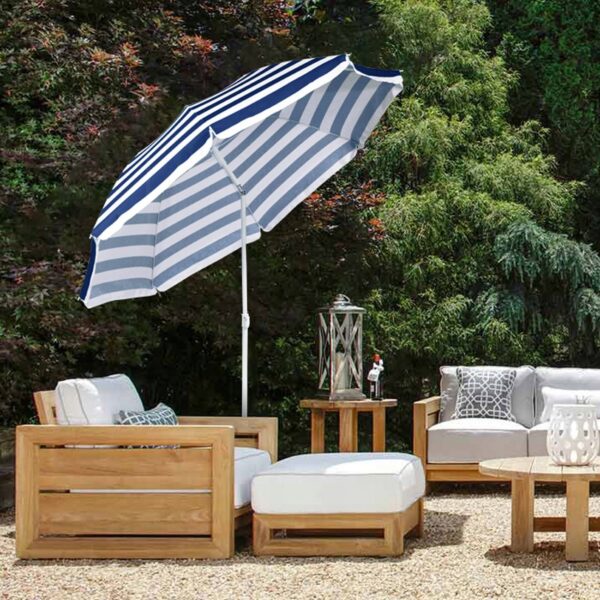 Regulowany drążek umożliwia dopasowanie wysokości parasola do aktualnych potrzeb, a funkcja nachylenia pozwala skutecznie chronić się także przed nisko ustawionym słońcem. Solidna konstrukcja z metalowym masztem i wzmocnieniami ze stali nierdzewnej gwarantuje trwałość i stabilność użytkowania.
