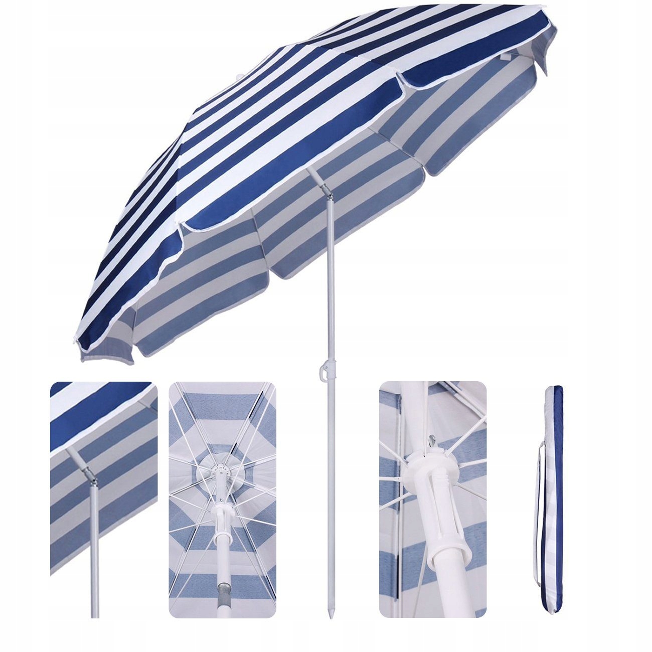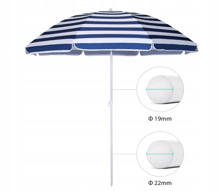 Parasol plażowy 160 cm UV25 regulowany lekki pokrowiec niebieski w paski Sekey