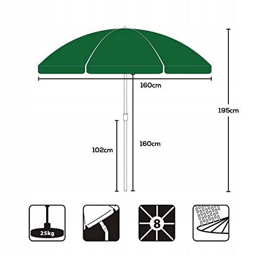 Regulowany drążek umożliwia dopasowanie wysokości parasola do aktualnych potrzeb, a funkcja nachylenia pozwala skutecznie chronić się także przed nisko ustawionym słońcem. Solidna konstrukcja z metalowym masztem i wzmocnieniami ze stali nierdzewnej gwarantuje trwałość i stabilność użytkowania.