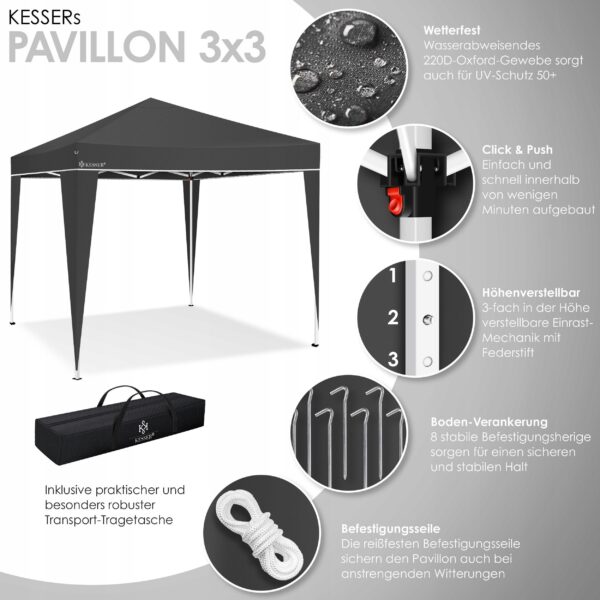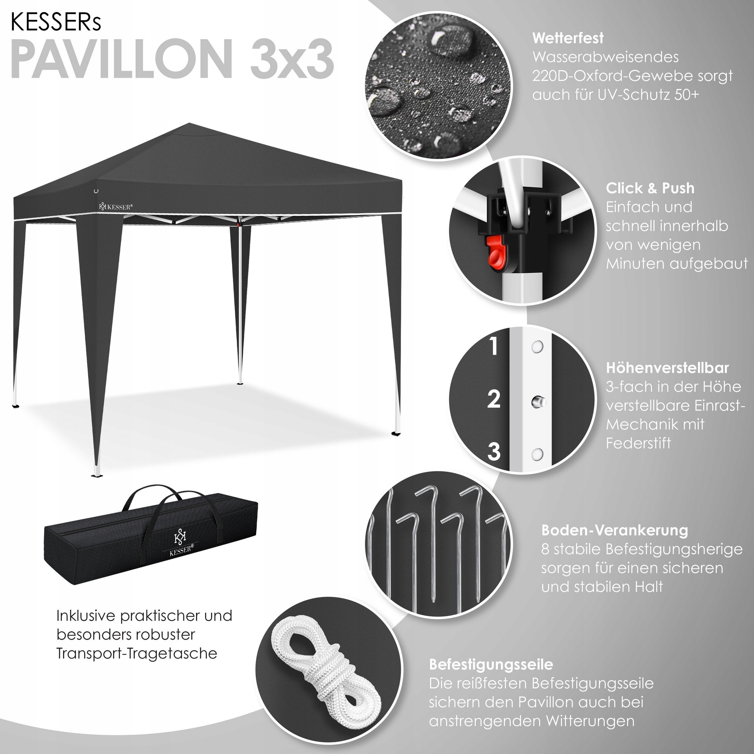 KESSER Pawilon 3x3m – łatwy montaż bez narzędzi, idealny do relaksu na świeżym powietrzu, trwały dzięki wodoodpornemu materiałowi i ochronie UV 50+