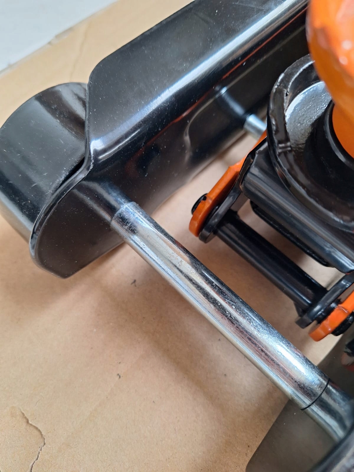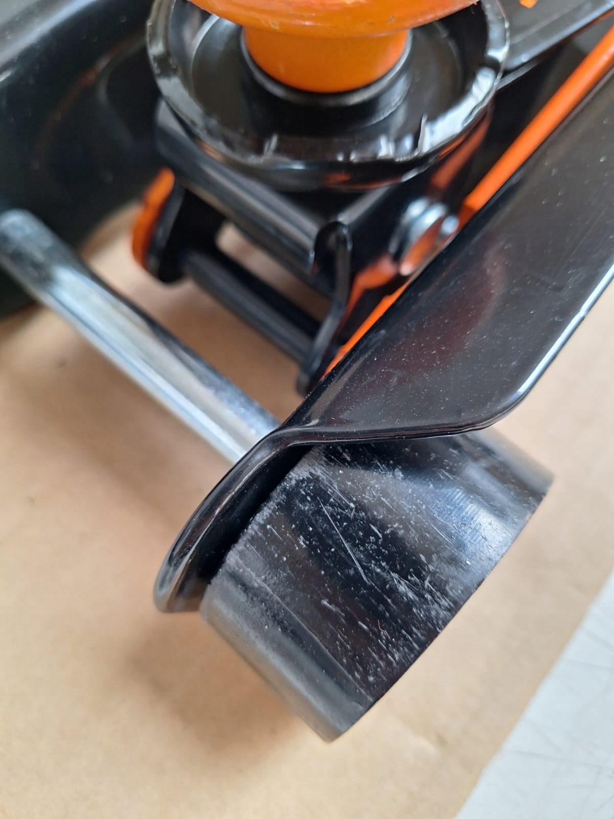 Produkt pochodzi ze zwrotu, ma zarysowania na rączce lewarka i na kółkach oraz pękniętą walizkę do transportu – stan pokazany na zdjęciach poniżej!