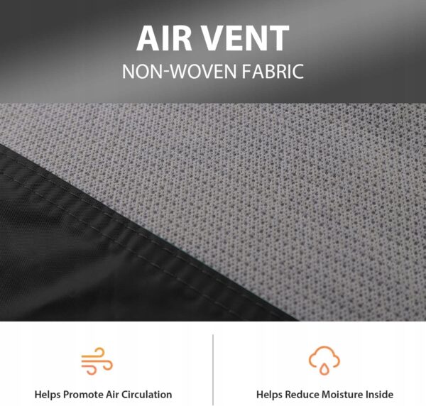 Łatwy w użyciu i wiatroszczelny: 2 wyściełane uchwyty są łatwe do zainstalowania i usunięcia, wokół osłony mebla znajduje się pierścień wylotów powietrza, który zmniejsza kondensację i rozwój wiatru, paski zatrzaskowe i regulowany sznurek są zaprojektowane tak, aby wytrzymać najgorsze klęski żywiołowe, od silnego wiatru po duże obciążenia śniegiem.