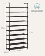 Półka na buty 10 poziomów wąska regał 173 cm czarna SONGMICS