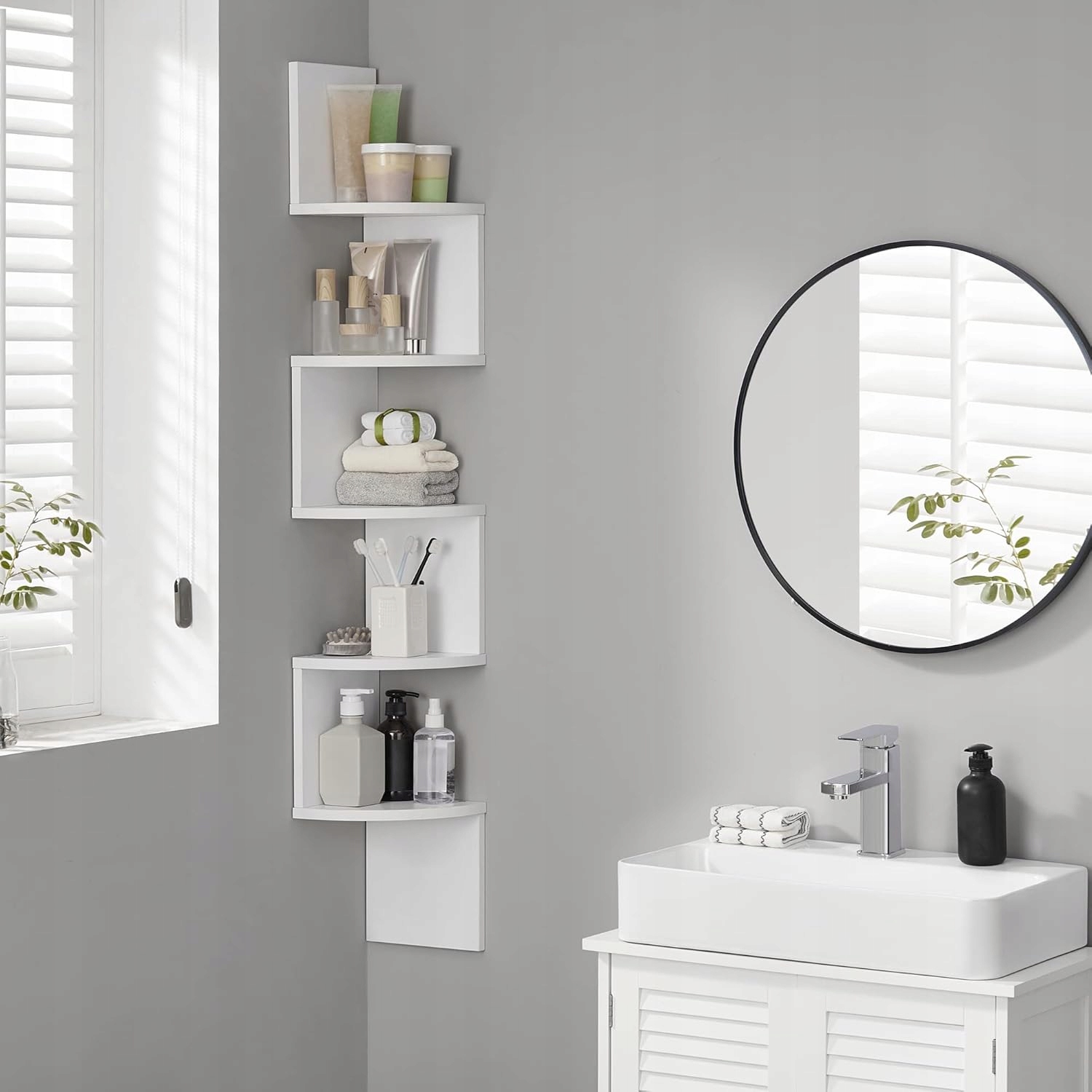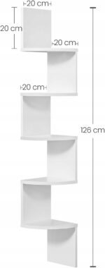 Nowoczesna półka narożna VASAGLE w kolorze Cloud White to idealne rozwiązanie do stylowego i funkcjonalnego zagospodarowania przestrzeni. Zygzakowaty kształt i delikatnie zakrzywione półki nadają wnętrzu lekkości i elegancji.