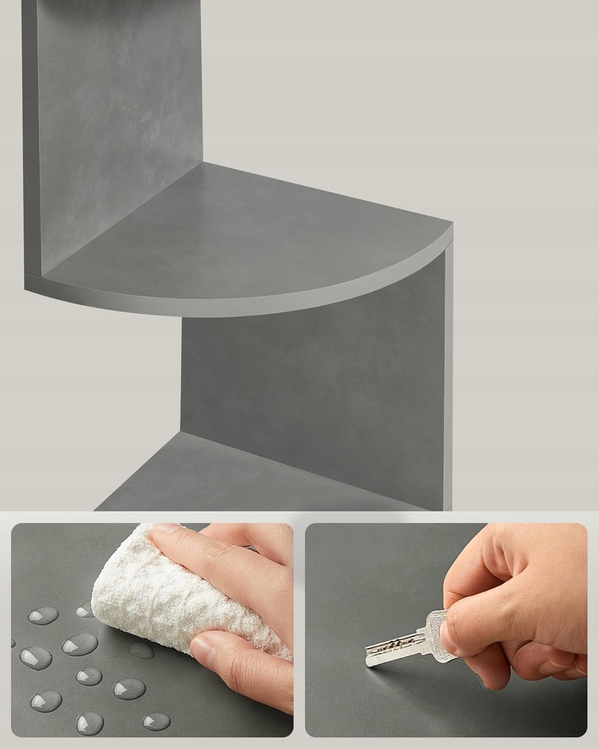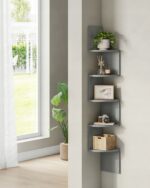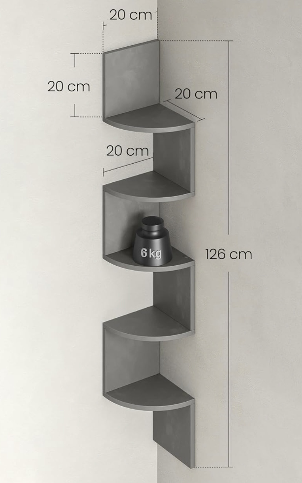 Stylowa półka narożna VASAGLE to idealne rozwiązanie do wykorzystania przestrzeni w Twoim domu. Dzięki nowoczesnemu, zygzakowatemu kształtowi oraz eleganckiemu szaremu wykończeniu doskonale komponuje się z wystrojem salonu, sypialni, łazienki czy biura.