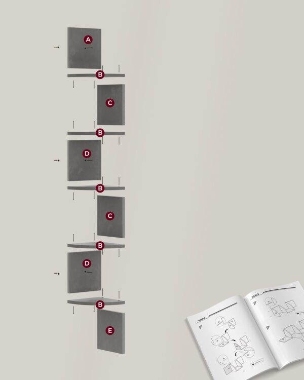 Pięć poziomów półek pozwala na wygodne przechowywanie i ekspozycję książek, roślin, dekoracji czy akcesoriów, jednocześnie oszczędzając miejsce na podłodze. Konstrukcja ścienna sprawia, że półka jest praktyczna i nie zajmuje cennej przestrzeni użytkowej.