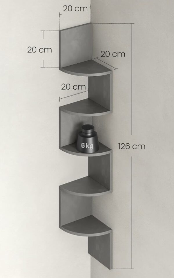 Półka narożna ścienna 5 poziomów wisząca regał szary VASAGLE