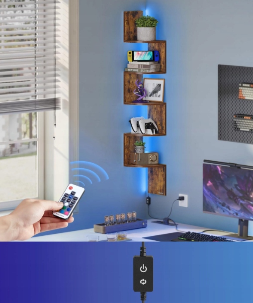 Nowoczesna półka narożna VASAGLE z podświetleniem LED to funkcjonalne i stylowe rozwiązanie do salonu, sypialni, łazienki lub biura. Wykorzystuje przestrzeń narożną, oferując dodatkowe miejsce na książki, dekoracje i rośliny.