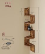 Półka narożna wisząca 5 poziomów LED vintage VASAGLE