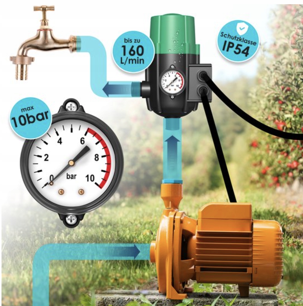 Sterownik ciśnienia KESSER to niezawodne rozwiązanie do kontroli i automatyzacji pracy pomp wodnych w instalacjach domowych oraz systemach nawadniania ogrodowego. Zapewnia stałe ciśnienie wody, chroni pompę przed pracą na sucho i eliminuje wahania ciśnienia, które mogą prowadzić do uszkodzeń instalacji.