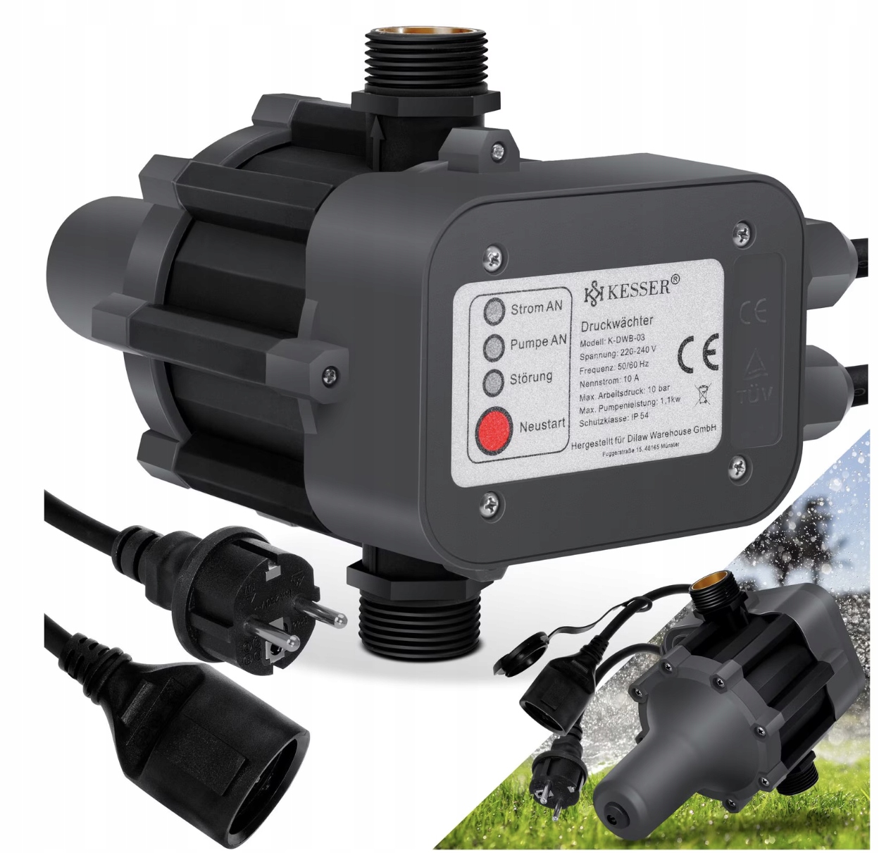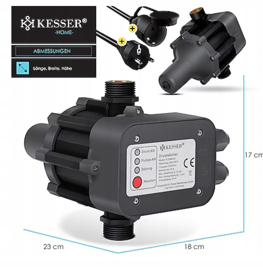 KESSER Elektroniczny wyłącznik ciśnieniowy | Do pompy 10 bar | IP54