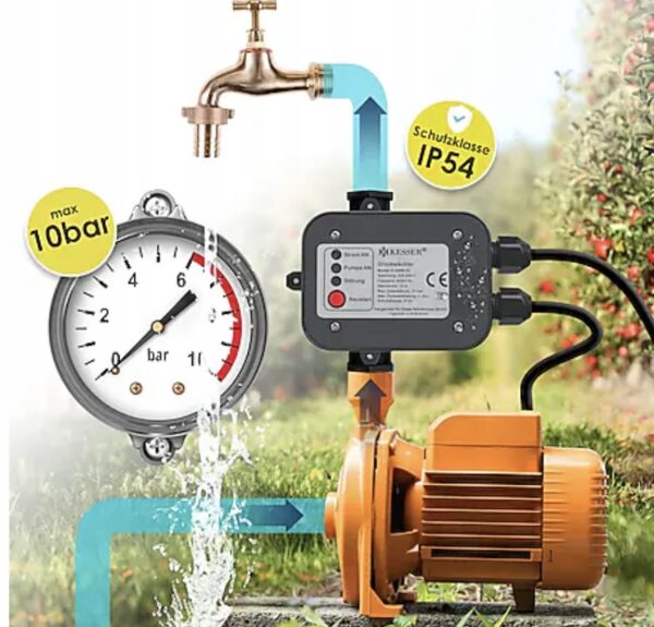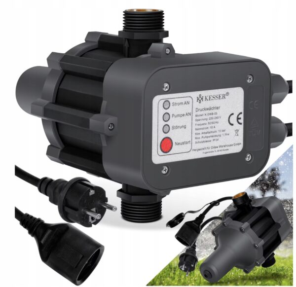 Zadbaj o pełną kontrolę nad pracą swojej pompy wodnej – bez ręcznego sterowania, bez ryzyka i bez skoków ciśnienia! Elektroniczny wyłącznik ciśnieniowy KESSER to nowoczesne urządzenie, które automatycznie steruje pracą pomp ogrodowych i domowych, zapewniając stałe ciśnienie wody oraz ochronę przed suchobiegiem.