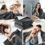 KESSER® Przytulny koc sherpa 130 × 150 cm – super miękki i ciepły –  koc polarowy antracytowy – idealny na sofę, łóżko, fotel czy podróż