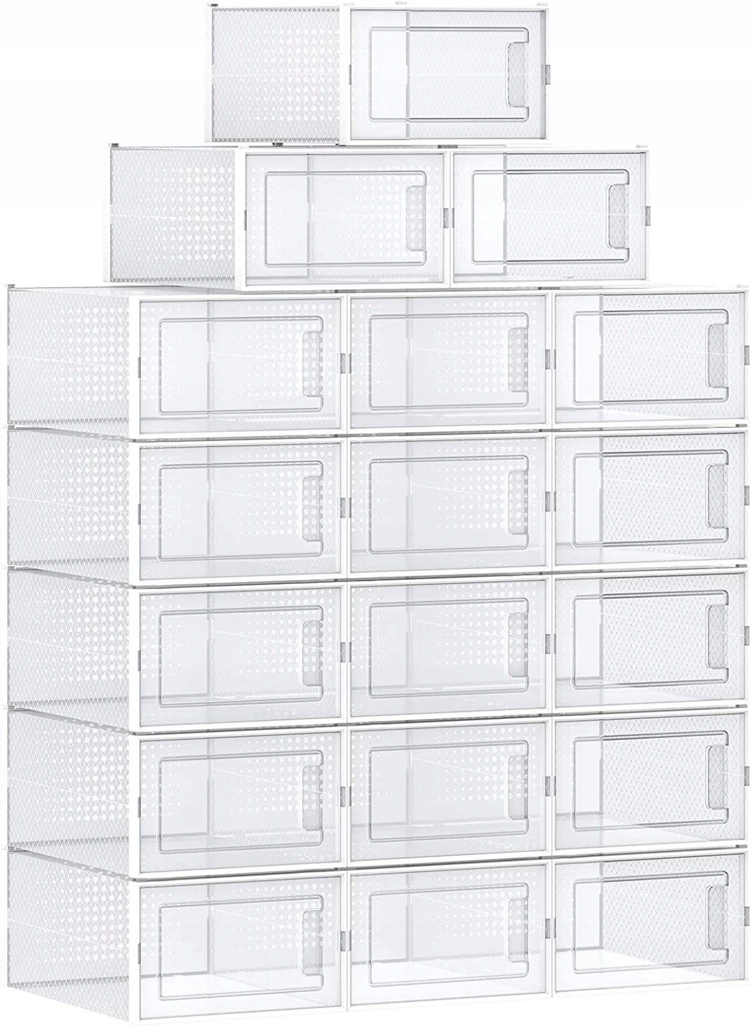 Zestaw 18 transparentnych pudełek na buty to praktyczny sposób na uporządkowanie obuwia w garderobie, szafie lub przedpokoju. Przezroczysta konstrukcja pozwala szybko sprawdzić zawartość bez otwierania każdego pudełka, dzięki czemu łatwo znajdziesz odpowiednią parę.
