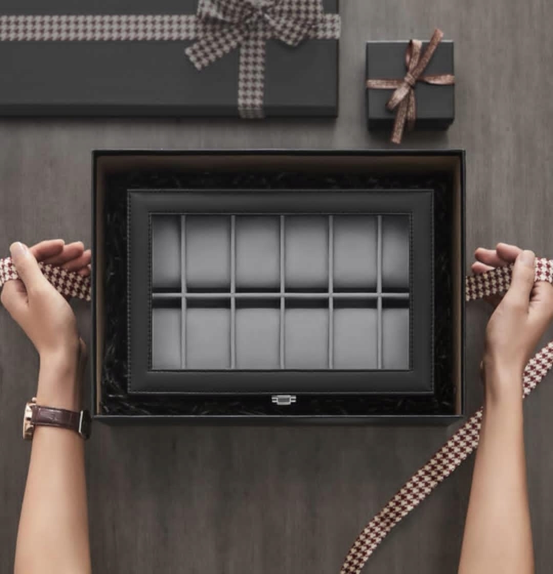 ✅ 12 przegródek z poduszkami – bezpieczne przechowywanie zegarków