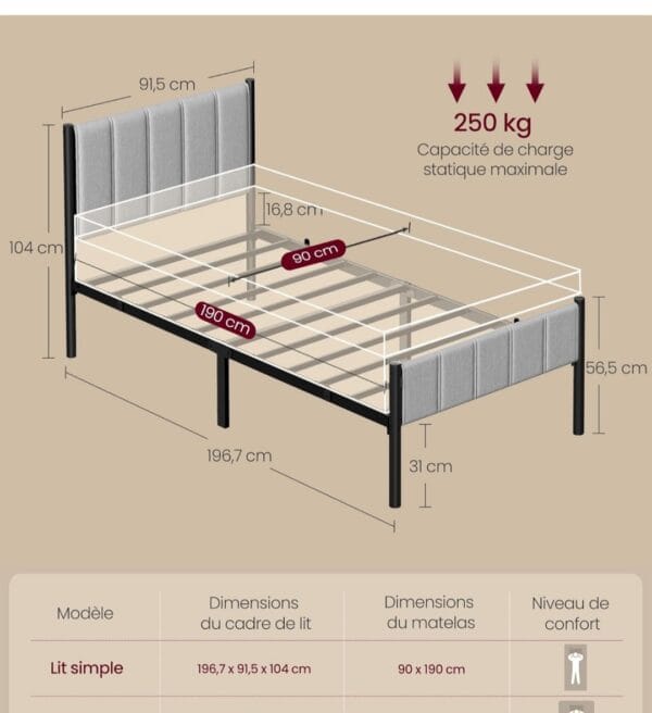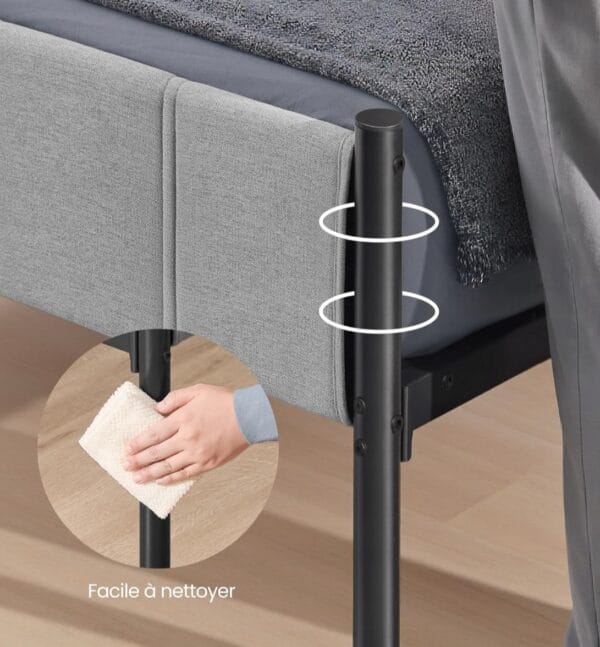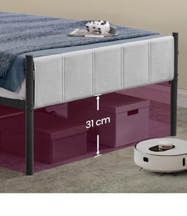 Nowoczesne łóżko jednoosobowe VASAGLE to połączenie minimalistycznego designu i solidnej konstrukcji. Proste linie oraz elegancki, szary kolor sprawiają, że idealnie pasuje do każdej sypialni – zarówno nowoczesnej, jak i klasycznej.